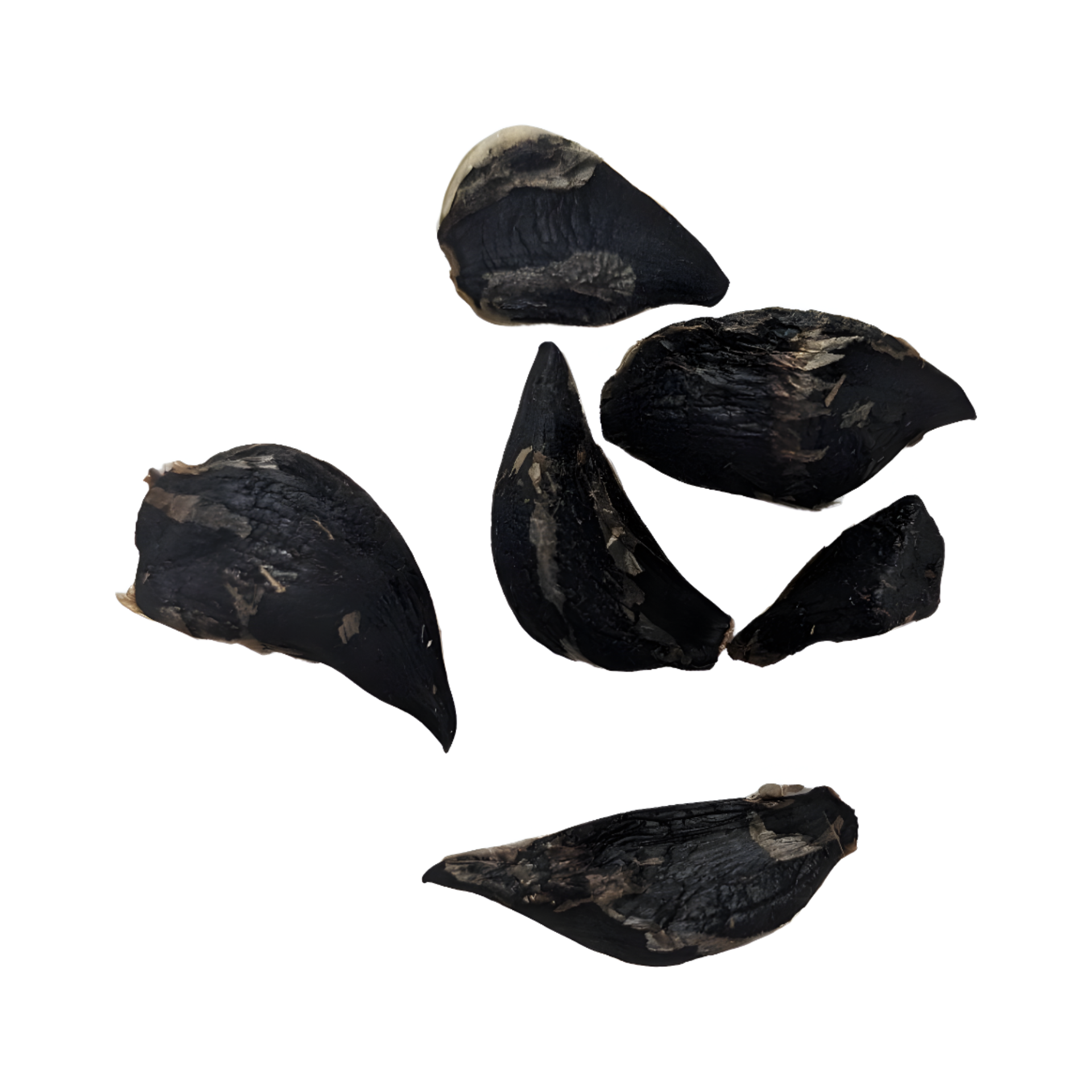 Black garlic is a type of garlic that has been fermented through a slow, month-long aging process under controlled heat and humidity. This process causes the garlic cloves to turn black and develop a sweet, savory flavor with a soft and jelly-like texture. While black garlic has been used for centuries in Asian cuisines, it has gained popularity in recent years due to its potential health benefits. Here are some of the health benefits associated with black garlic: